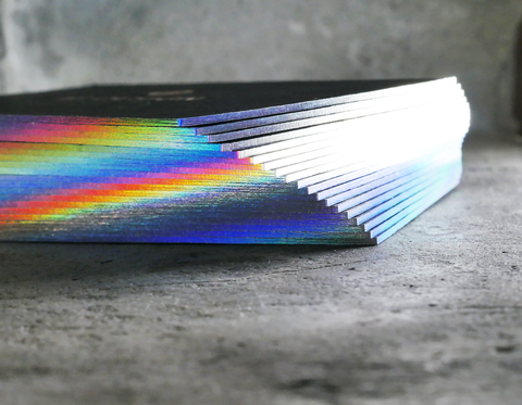 Vor allem bei exklusiven Visitenkarten sorgt ein Goldschnitt für einen starken visuellen Akzent. Die Kanten schimmern in z.B. Gold, Silber, Kupfer, Neon und verleihen den Visitenkarten eine monolithische, aus einem Guss wirkende Optik.